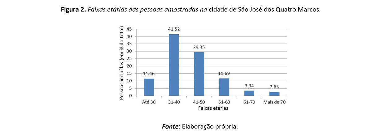 No caso do município de São José dos Quatro Marcos, onde a maioria dos seus 18 998 habitantes está concentrada na sede municipal (Segundo o Censo do Instituto Brasileiro de Geografia e Estatística (IBGE) (2010), o ranking do Sistema Nacional de Informações sobre Saneamento (SNIS) (Ministério do Desenvolvimento Regional, 2018) destacava que apenas 75.94 % dos domicílios são abastecidos pela rede pública de distribuição de água tratada (no país é de 82.9 %). Além disso, o Plano Municipal de Saneamento Básico (2014) relata que somente 9.3 % dos domicílios possuem ligações à rede de esgoto ou pluvial, o que coloca o município no lugar 1185 dentre os municípios de pequeno e médio porte. Esta realidade explica a necessidade de conhecer a percepção dos moradores sobre os serviços de saneamento básico da cidade, tendo em vista que o significado dado ao meio ambiente (com base nas experiências pessoais, relações sociais e cultura), orientam as atitudes, escolhas e comportamentos individuais (Souza, 2015), que diferem entre os indivíduos conforme variáveis como idade, sexo e local de moradia, como apontado por Olmos-Martínez et al. (2016). Nesta comunicação se apresentam os resultados de um estudo que objetivou identificar a percepção da população residente na cidade de São José dos Quatro Marcos sobre o fornecimento e utilização domiciliar da água potável.MATERIAIS E MÉTODOS