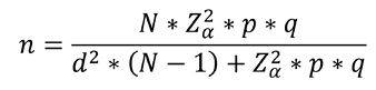 Se consideró el universo de las UPP registradas en el Padrón Ganadero Nacional para el municipio de Ixmiquilpan, Hidalgo, en este padrón se reportaron 100 UPP con finalidad zootécnica de carne en condiciones de estabuladas/traspatio y agostadero. Se consideró un nivel de confianza de 95% y el valor de la distribución normal de 1.96 con estas variables descritas, la fórmula que se utilizó para calcular el tamaño de la muestra (Ochoa et al., 2020) fue la siguiente: