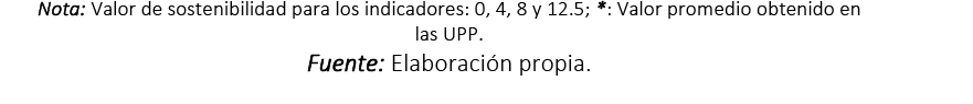 A pesar de existir estudios que evalúan la sostenibilidad en el ámbito de la UPP (Pinedo-Taco et al., 2021) no hay consenso que preestablezca un conjunto de indicadores para uso universal; por lo que, el empleo de indicadores en un análisis multicriterio permite cuantificar los distintos aspectos que conforman un sistema de producción agropecuario. Las tres dimensiones señaladas en este estudio son fundamentales para el desarrollo sostenible en las zonas rurales y en particular de los sistemas de producción animal para la prosperidad de las economías rurales, la obtención de beneficios ecológicos y aporte desde una perspectiva sociocultural. La metodología aplicada (Losada et al., 2009) en este estudio fue con enfoque holístico y se tradujo en una serie de indicadores que permitieron evaluar el grado de sostenibilidad en las dimensiones social (62), ecológica (70) y económica (47).