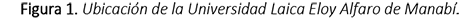 La investigación se realizó en la sede de la Universidad Laica Eloy Alfaro de Manabí, ubicada en la ciudad de Manta, Ecuador (figura 1). Posee una extensión aproximada de 214 283 m2. Presenta varias infraestructuras civiles (edificios, calles, aceras, postes y cableado) y diversas áreas verdes de distintas características y variados fines. Además, es considerado uno de los espacios con mayor densidad arbórea de la ciudad.