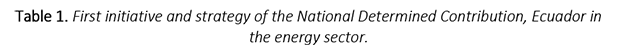 Thus, with the promotion of hydropower and taking precautions against the impacts of climate change, in 2019, the Ministry of Environment, Water and Ecological Transition of Ecuador presented the First National Determined Contribution (NDC) as a tool that has an objective to guide the application of the actions at the national, sectorial and local levels that encourage the reduction of greenhouse gases, as well as the increase in adaptive capacity and risk reduction in the adverse effects, the face of climate change in the prioritized sectors, including the energy sector (Ministry of the Environment, 2019; Llerena-Montoya et al., 2021).