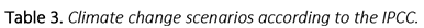 Moreover, to project the upcoming difference conservatively to the emblematic plants, the data according to the Intergovernmental Panel on Climate Change (IPCC) scenarios that mention climate change can have fluctuations related to evolution lines divided into four groups (A1, A2, B1, and B2). The A-line presents a pessimistic scenario where emissions are maintained or increase in the future. The evolution line B represents an optimistic scenario in which greenhouse gasses emissions are reduced worldwide (Alley et al., 2007; Arango-Aramburo et al., 2019). In this context, besides explaining the IPCC scenarios in groups to emulate our future analyses.