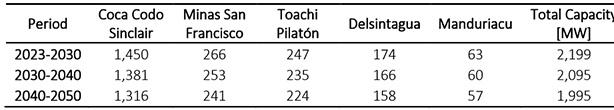 As a result, making a lineal reduction with the different scenarios as illustrated in table 3, we project a capacity to 2050 around the besides calculus for the emblematic projects, called emblematic by the capacity that changed in a notable way the renewables increase in energy grid of Ecuador.
