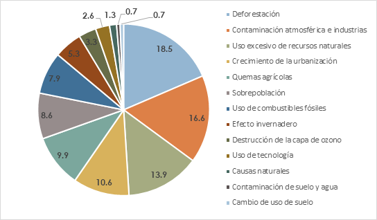 deforestación, contaminación atmosférica y cambio de uso de suelos; los efectos