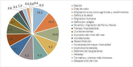 incremento de la radiación solar. Los impactos principales son sequía, olas de