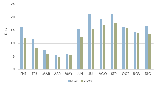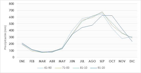 registros climáticos indican que en el periodo 1961-1990 la precipitación era
