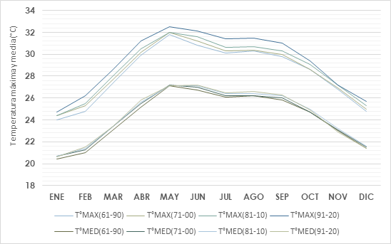 temperatura máxima incrementó de 28.3°C a 29.3°C y la temperatura media de