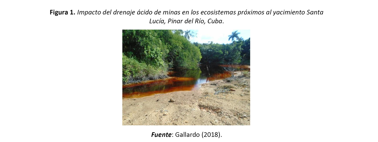 Las transformaciones físico-químicas que ocurren en los diferentes procesos de los yacimientos sulfurosos, destacan la importancia de la recuperación rápida de las áreas afectadas en estos procesos mineros. La exposición de esos depósitos a largos períodos de tiempo provoca la oxidación biótica y abiótica de los sulfuros, en especial la pirita, lo que agudiza la contaminación en la región, convirtiéndola en el problema ambiental más impactante para los ecosistemas asociados al yacimiento Santa Lucía (figura 2).