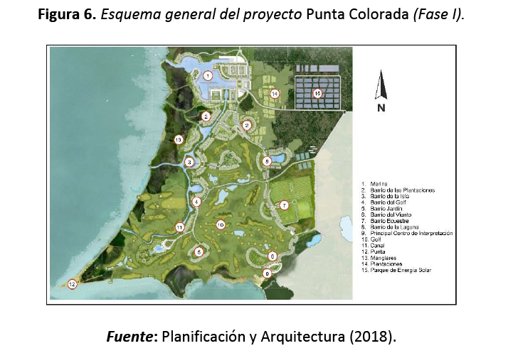 El trabajo que se presenta tuvo como objetivo evaluar el recurso agua como elemento clave en una zona de alto potencial turístico, identificada para el desarrollo de un proyecto en la modalidad de golf y marina, el cual implica a punta Colorada en su primera fase; y cuyo diseño del producto persigue convertirlo en «… un generador económico para el desarrollo de la región, y una vez ejecutado hasta su máximo potencial, demostrará ser una atracción irresistible para turistas de todo el mundo para que descubran Cuba» (Planificación y Arquitectura, 2018).