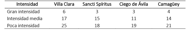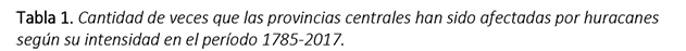 En Cuba, las provincias centrales han sido afectadas mayormente por huracanes de poca intensidad, siendo los meses de octubre y septiembre los más peligrosos (Córdova-García et al., 2018).