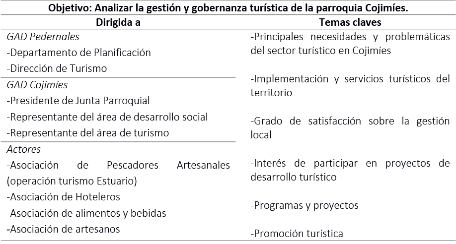 Las nueve entrevistas aplicadas a los principales gestores y actores del turismo en la parroquia Cojimíes permitieron conocer su percepción sobre ese sector (tabla 1).