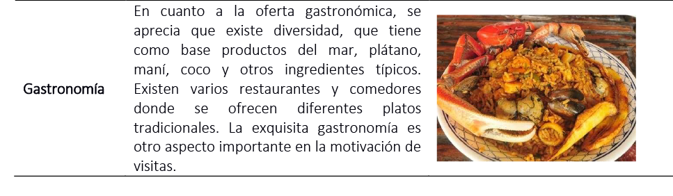 En este análisis se sistematizaron las preguntas que evaluaron al sector turístico y su gestión. Los gestores y actores consideraron que, después del sismo de 7.8 Mw ocurrido el 16 de abril de 2016, el turismo ha evolucionado de manera considerable. El mes de agosto y los feriados son las fechas más visitadas. La localización geográfica facilita la afluencia de turistas, principalmente de la región Sierra. Por su parte la planta turística de la parroquia es considerada adecuada. En el territorio se aprecia el crecimiento de inversiones en la estructura hotelera y en emprendimientos de alimentos y bebidas. Sin embargo, se evidencian problemáticas que limitan el desarrollo del turismo, entre ellos: la falta de alcantarillado sanitario y pluvial, el deficiente manejo de residuos sólidos y líquidos, la insuficiente señalética, la limitada accesibilidad e instalaciones turísticas, la baja calidad del servicio y la falta de capacitaciones.