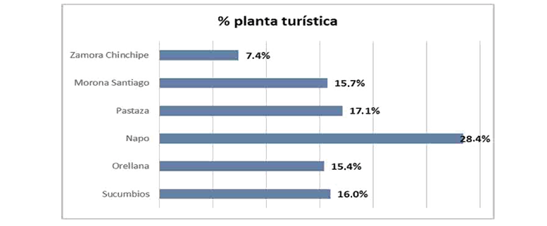 La Amazonía Ecuatoriana concentra seis provincias de las 24 existentes en el país, con la presencia de 41 cantones y 203 parroquias, entre urbanas y rurales. El Ministerio de Turismo (2020) refiere la existencia de 24 720 empresas turísticas en Ecuador, de las cuales al menos el 70% corresponde al sector de alimentos y bebidas, generando el 66% de los empleos; el 17% son establecimientos de alojamiento, donde se genera el 21% de los empleos; la operación turística, transporte, intermediación y centros de turismo comunitario abarcan el 13% de los establecimientos con una representatividad en el empleo del 13%. De este total de empresas, el 5% se encuentra registrado en la RAE (1266 establecimientos), mostrando una concentración en la provincia Napo, con al menos el 28%, seguida por Pastaza con el 17% y en menor cantidad el resto de las provincias amazónicas.