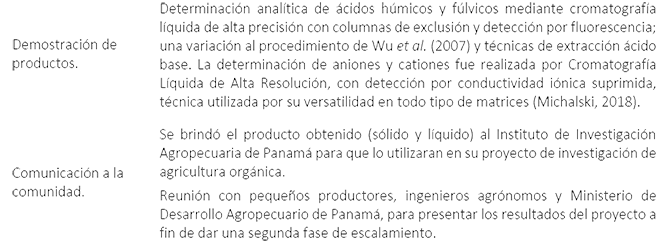 Este proyecto fue ganador de una convocatoria pública de gestión integral de residuos sólidos de la Secretaría Nacional de Ciencia, Tecnología e Innovación (SENACYT, 2018). Fue aprobado y apoyado por la Vicerrectoría de Investigación y Postgrado de la Universidad de Panamá, con la expectativa de procesar residuos frescos de las cocinas de las cafeterías universitarias, mediante la técnica de vermicompostaje, con la lombriz Eisenia Foetida como elemento biotecnológico; y demostrar la transformación de estos residuos en sustancias húmicas. Además de impulsar el aprovechamiento de este producto en huertas de autoconsumo y así reducir los costos operativos de la Universidad, debido a que son consideradas esenciales en la mejora de la estructura del suelo y el crecimiento de las plantas (Blouin et al., 2019; Fernández-Delgado et al., 2020).