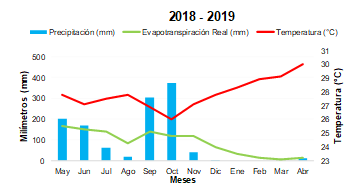 En cuanto al análisis de variables meteorológicas, como la temperatura, la precipitación y la evapotranspiración, en el periodo 2018-2021 se observó que las precipitaciones más altas fueron las del año 2019 (figura 7), específicamente en octubre, cuyo año coincide con el caudal más alto registrado.