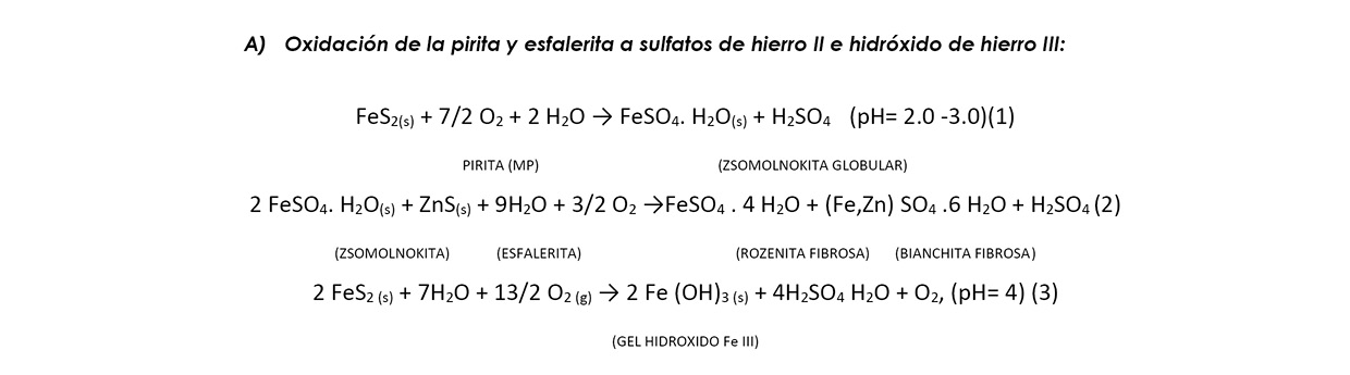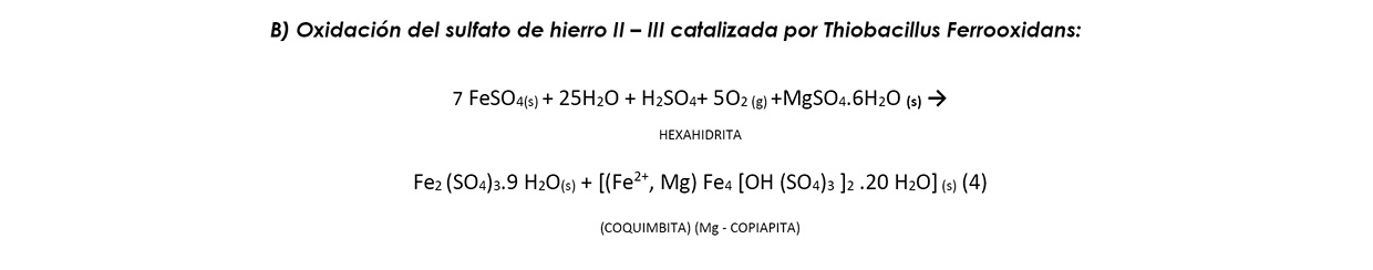 Durante el proceso de oxidación del hierro se produce el crecimiento bacteriano, se incrementa la concentración celular y, con ello, el contenido de hierro (III) en los licores, corroborándose la influencia de los microorganismos en la generación del drenaje ácido de mina, en los yacimientos sulfurosos. Los resultados de las reacciones de oxidación de los sulfuros en esta zona se expresan a continuación.